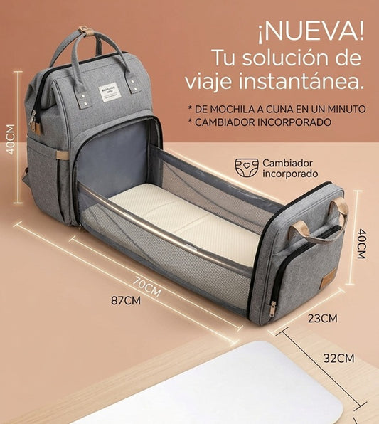 Pack Viaje Bebé: Mochila & Cambiador & Cuna (3 en 1) + Regalo: Portabebés GRATIS